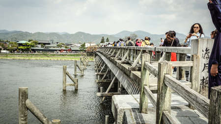 Kyoto,Japan-February 24, 2020: Togetsu-kyo Bridge in Arashiyama, Kyoto