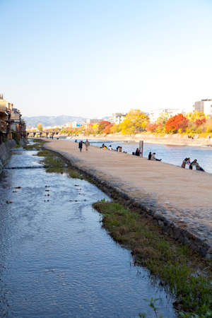 Kamo River View in Kyoto Japan