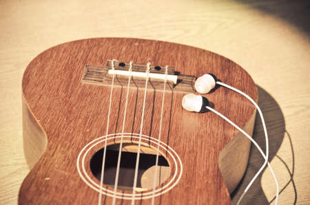 The Ukulele and headphones. Vintage photo retouching