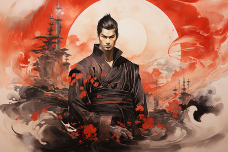 Portrait of a japanese asian man in traditional costume