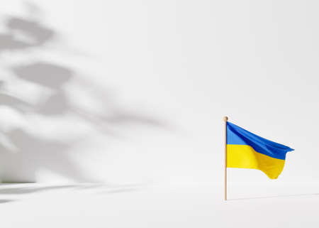 Ukrainian flag on white background. Russian Ukrainian conflict. Save Ukraine. Stop war, military attack and occupation. Support. Free, copy space for your text. 3D rendering.