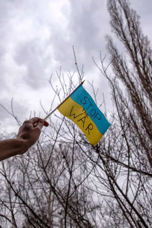 Yellow-blue national flag of Ukraine as a background, stop war and peace in Ukraine 2022