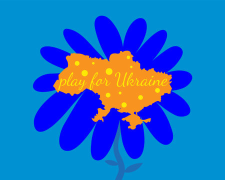 Flower in the center with the country Ukraine. Associative illustration of peace, love and prosperity. Drawing in blue and yellow colors for Independence Day, Flag Day of Ukraine.