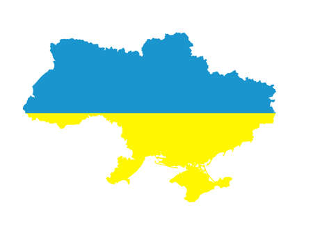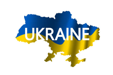 Map of Ukraine with national flag inside on white background. Independent state, yellow-blue state Ukrainian color. Glory to Ukraine. vector illustration
