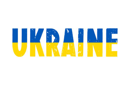 Text UKRAINE with the colors of national flag. Letters on white background. Independent state, yellow-blue state Ukrainian color. Glory to Ukraine.
