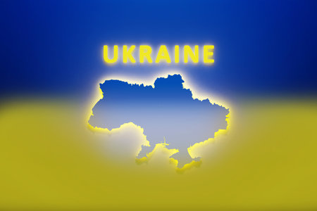 Map territory of Ukraine in Blue and Yellow Colors. Glory to Ukraine. Independent state, state color, yellow-blue Ukrainian color.-SupplementalCategories+=Images