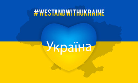 We Stand With Ukraine slogan illustration Ukrainian text on the color map Pray For Ukraine peace