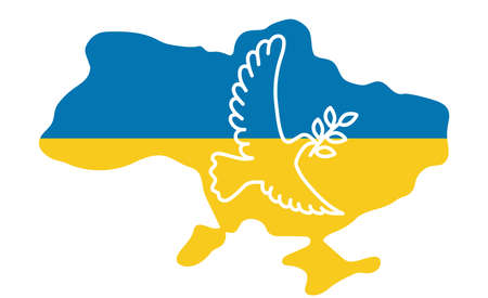 Map of Ukraine with national flag and dove of peace