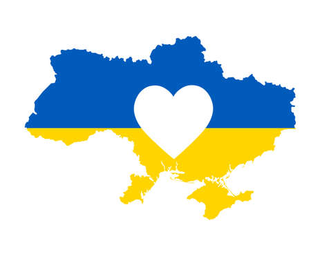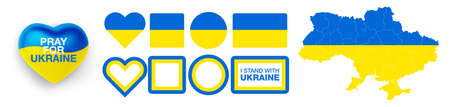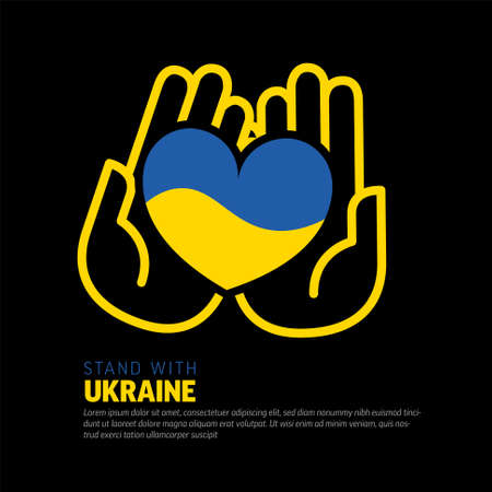 Support for Ukraine in the war with Russia, symbol of Heart with flag of Ukraine. Pray, No war, stop war and stand with Ukraine
