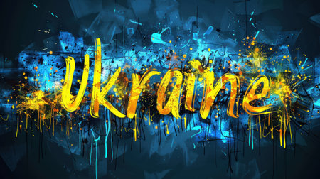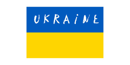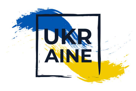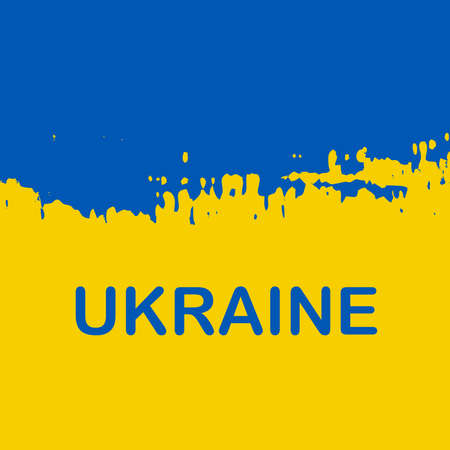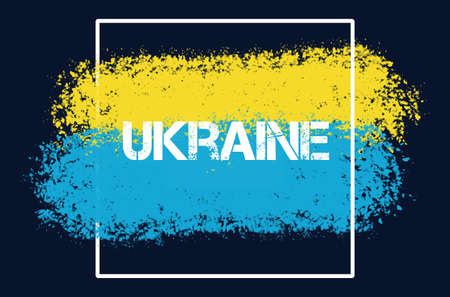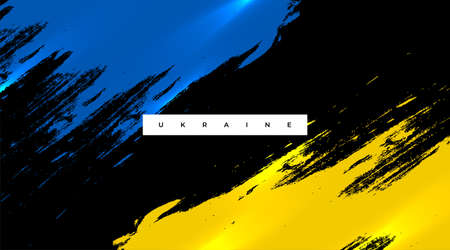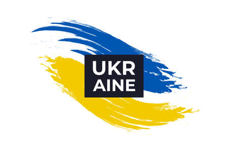 Flag of Ukraine, European state. Blue and yellow stripes, white brush stroke, lettering. Fight for independence. Vector graphic illustration for any purpose, print design, map, poster, banner