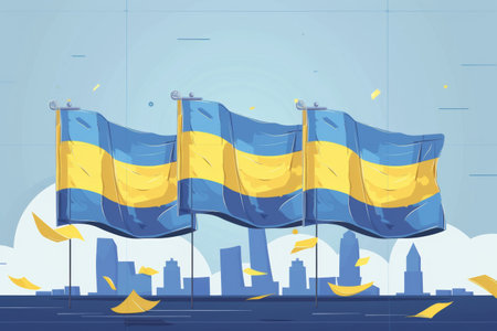 A set of illustrations in the national colors of the state of Ukraine.