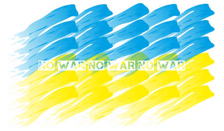 Stylized flag of Ukraine with a white inscription no to war. An illustration of a protest against Russian aggression. yellow and blue stripes, symbol, icon Against the war in Ukraine