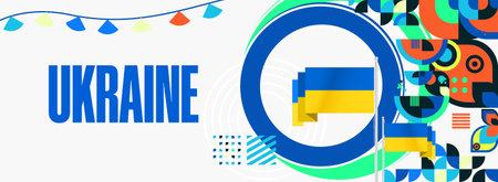 Patriotic poster celebrating Ukraine National Independence Day in colorful geometric style. Modern holiday celebration banner, suitable for greeting cards, and presentations business