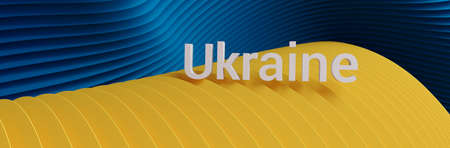 3D rendering. Yellow and blune curved lines background header with 3D text Ukraine