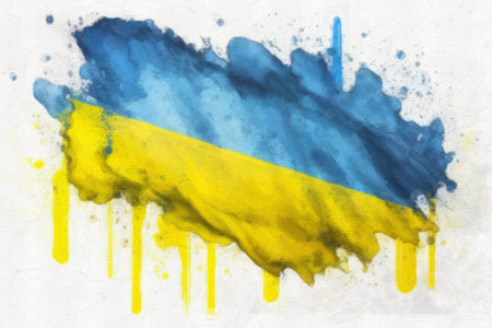Ukrainian flag painted with yellow and blue paint on white paper
