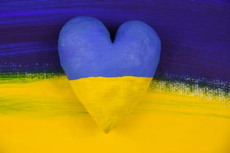 Abstract painted flag of Ukraine with handmade heart stock images. Russian invasion of ukraine symbol. Grunge Ukrainian flag with heart stock photo