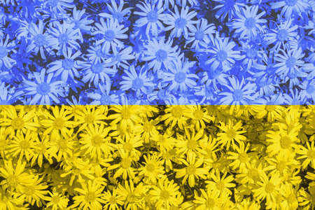 Blue and yellow colors of the Ukrainian flag on floral background. Peace in Ukraine. Color tinting
