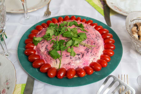 salad herring under a fur coat and tomatoes