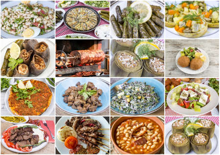 Traditional Turkish foods collage. Food background. Selective focus.