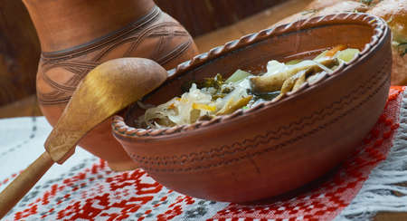 borscht with lard sour cream and herbs is a traditional Ukrainian dish