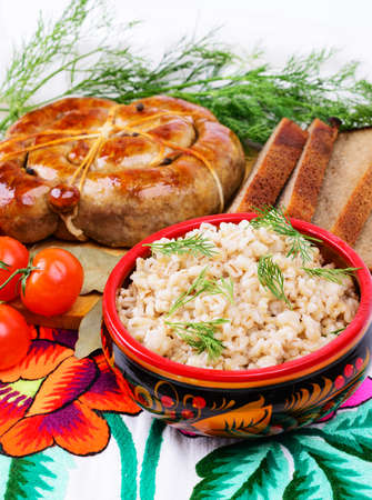 Barley porridge in painted wooden cup