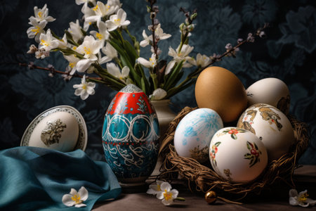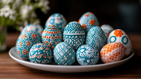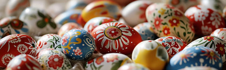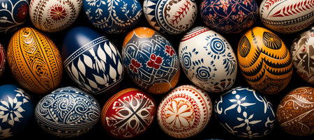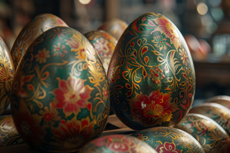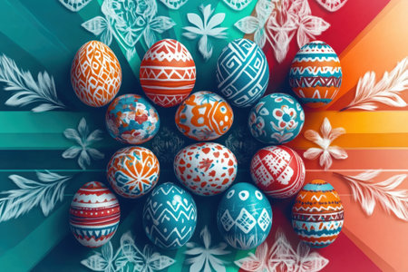 Brighten your Easter with hand-painted eggs! Discover intricate, vibrant patterns that bring joy and elegance Each unique egg is a cheerful work of art, perfect for festive spring decor Celebrate tradition with these delightful creations and spread the Easter spirit Explore the collection today! AI Generative