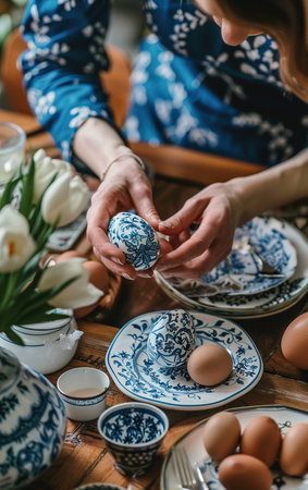 easter eggs painted by people, in the style of exquisite craftsmanship.