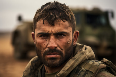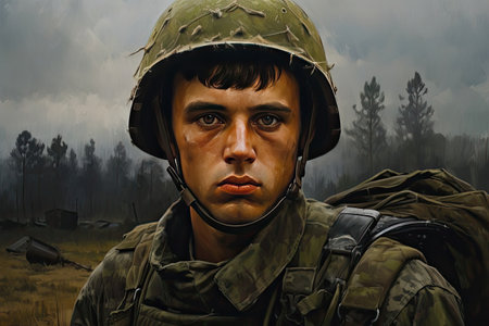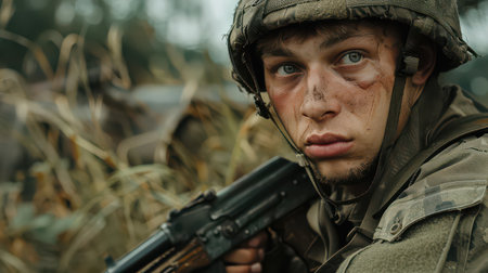 Soldier close-up, post-combat syndrome in a young military man,