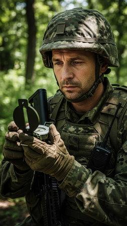 Focused young soldier in field training, epitomizing resilience and preparedness in the army.