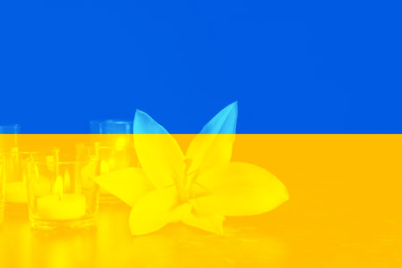 Blue and yellow colors of the Ukrainian flag on floral background. Peace in Ukraine. Color tinting