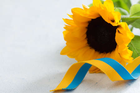 Sunflower and blue-yellow ribbon, symbol of Ukraine concept