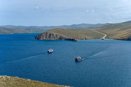 The twisting coast of Lake Baikal with hills