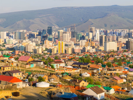 Sunset aerial view of Ulaanbaatar, Mongolia