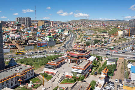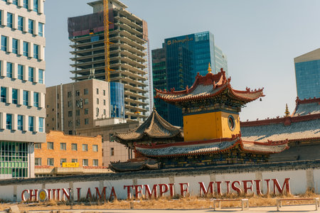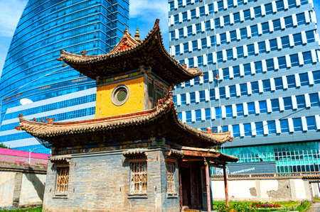 Ulan-Bator, Mongolia - August 26, 2016: Ancient temples and modern buildings define architectural style of the Mongolian capitol.