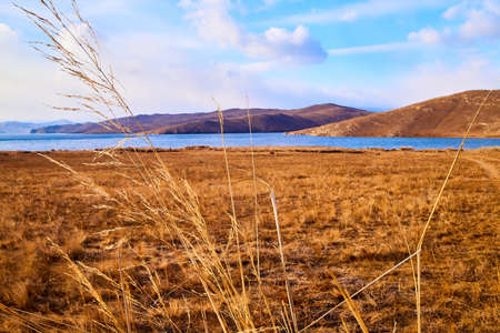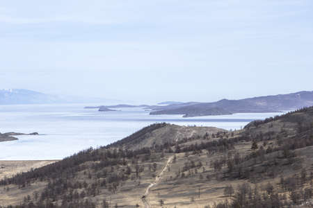 Winter view from the island Ogoy on Lake Baikal, Russia