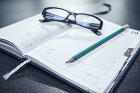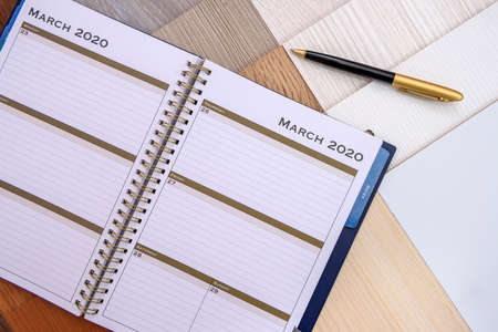 close up of calendar on the table, planning for business meeting or travel planning concept