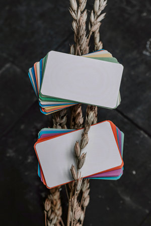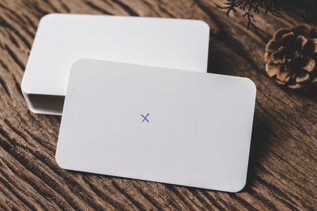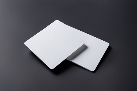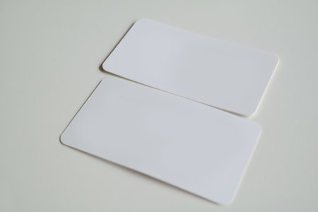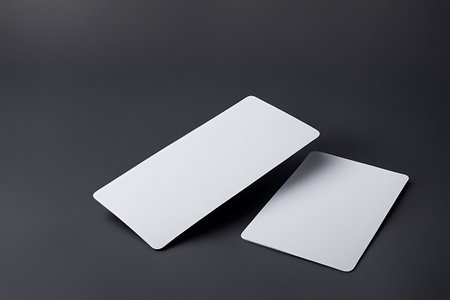 Two white cards placed on a dark background, creating a minimalist and elegant composition.