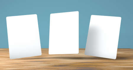 Playing cards mockup, deck of playing cards on wooden table. 3D rendering illustration
