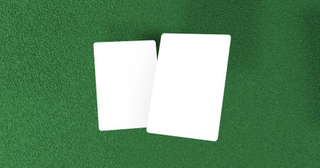 Two white playing cards are displayed against a dark background, creating a stark contrast and minimalist aesthetic.