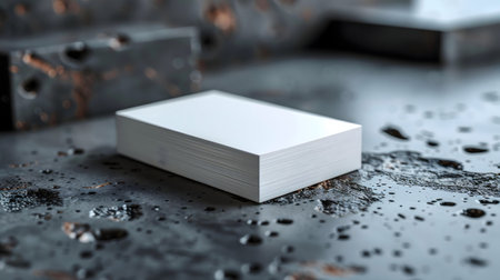 A stack of blank business cards sits on a dark textured surface. Great for mockups.