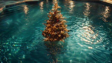 A christmas tree in the pool