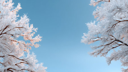 Experience the beauty of frosty branches glistening against a bright blue sky, portraying a tranquil winter atmosphere ideal for various creative projects.