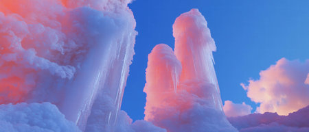 Surreal towers of ice rise majestically from a frozen volcanic landscape in beautiful colors