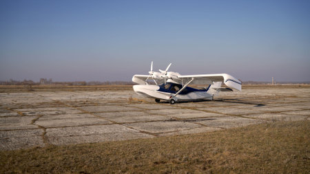 Yalutorovsk, Russia - September 14, 2013: Hydroplane SK-12 Orion on sport airdrome