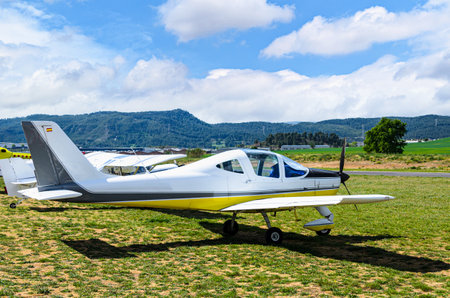 ROMA, ITALY - JULY 2017: Easy-engine aircraft on the runway Tecnam P92-S Echo