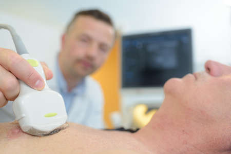 Ultrasound specialist conducts a comprehensive ultrasound examination of man