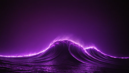 3D illustration of a purple abstract wave in the sea with lighting effects
