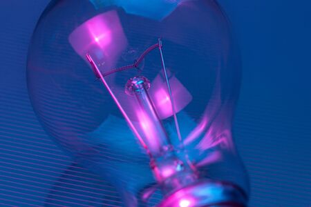 Photo of light bulb lamp in neon light. Ideea concept.