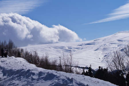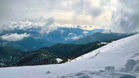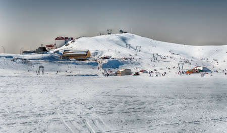 View of the mountains in ski resort. Uludag is the ancient Mysian Olympus and Bithynian Olympus, a mountain in Bursa Province, Turkey.