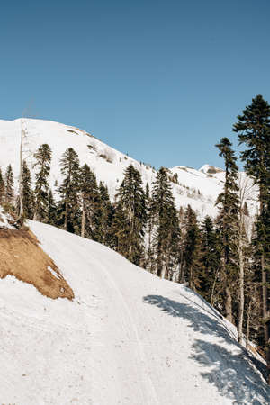 Winter mountain landscape: The Rosa Khutor Alpine Resort near Krasnaya Polyana panoramic background.